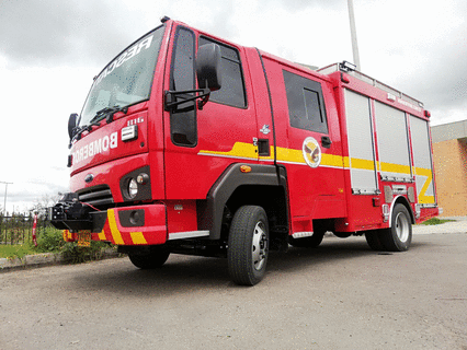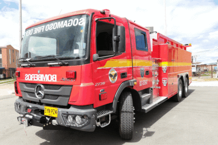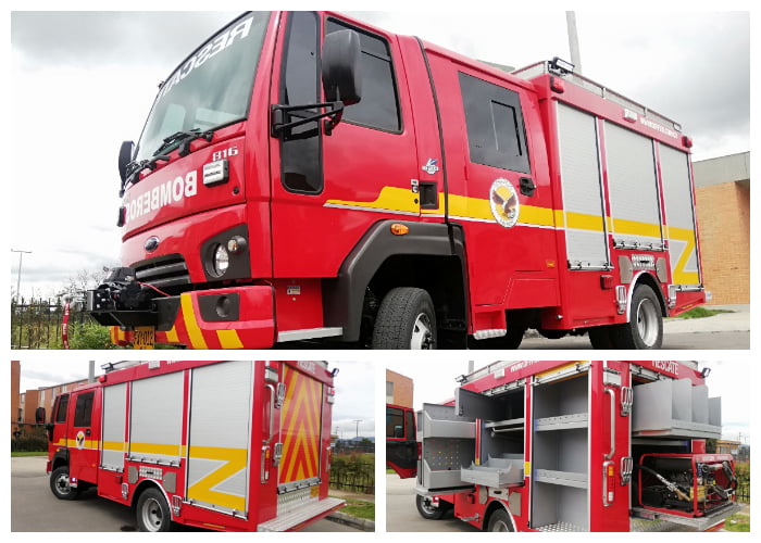 Inicialmente se recibió un vehículo doble troque tipo volqueta el cual fue restaurado en su totalidad y transformado en un camión cisterna para uso de bomberos .