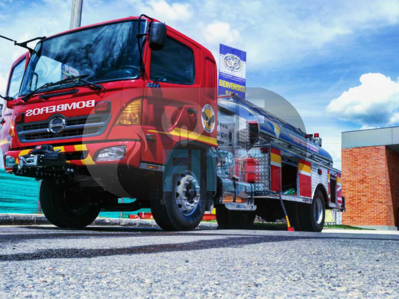 Chasis HINO 500, Tanque acero inoxidable, Capacidad 2500 gl, Bomba Waterous 500gpm@150ps, Tablero de instrumentos en acero inoxidable, Luces según norma NFPA, Carrocería en aluminio con puertas tipo persiana, Winche americano warn Zeon 10.000 lbs 24V.